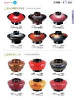 5.5寸 御殿型煮物椀やすらぎミニ丼3-248-1 ¥2,2005.5寸 御殿型煮物椀 朱ツバ黒内黒 B 2-286-1(33601420)3-248-2 ¥2,7005.5寸 御殿形煮物椀 溜 春秋 B 2-286-2(35000450)3-248-3 ¥2,8005.5寸 御殿型煮物椀 紫かすみ B 2-286-3(12025430)3-248-4 ¥2,5005.5寸 御殿型煮物椀 黒金ライン B 2-286-4(12025440)3-248-5 ¥2,9505.5寸 御殿型煮物椀 朱刷毛目一筆 B 2-286-5(32602100)3-248-6 ¥3,7005.5寸 御殿型煮物椀 黒蔦内朱 B 2-286-6(33021240)3-248-7 ¥1,650やすらぎミニ丼 梨地天黒内朱 A 2-286-7(41000140)3-248-8 ¥1,800やすらぎミニ丼 朱ツバ黒内黒 A 2-286-8(41000040)3-248-9 ¥2,750やすらぎミニ丼 銀光彩ぼかし内朱 A 2-286-9(41000090)3-248-10 ¥2,200やすらぎミニ丼 溜はじき刷毛目内朱 A 2-286-10(41000060)3-248-11 ¥2,900やすらぎミニ丼 香林内朱 A 2-286-11(41000080)3-248-12 ¥2,950やすらぎミニ丼 朱本銀平目ツバ黒内黒 A 2-286-12(41000100)φ164×H95(H60)590cc,205g(130g)φ147×H90(H67)550cc,220g(120g)煮物椀・丼248248煮物椀・丼煮物椀・丼