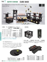 (マーブル)(ストレート)丸マーブル&ブラックトレイ H 直運3-765-4 φ330 109913 BK S ¥7,100φ330VK2-157-4(51026040)3-765-5 φ430 109917 BK M ¥10,500φ430VK2-157-5(51026050)長角マーブル&ブラックトレイ H 直運3-765-6 320×170 3217 BK ¥4,800320×170VK2-157-6(51026100)3-765-7 320×260 3226 BK ¥7,100320×260VK2-157-7(51026110)3-765-8 530×160 5316 BK ¥7,100530×160VK2-157-8(51026130)3-765-9 530×320 5332 BK ¥13,000530×320VK2-157-9(51026140)マーブル&ブラックトレイ料理に合わせて両面使用出来るGNサイズのトレイです。表面はエレガントで美しいマーブル仕上げでツヤのある光沢を保ち、裏面はブラックのスレート仕上げで、和洋コラボの盛りつけを始め、現代感覚あふれた雰囲気をかもし出します。材質はメラミン樹脂で強度に優れ、ワレ・カケ・チップしにくく、掃除が簡単で清潔です。Cube Baseキューブベース3-765-2 直運 ¥29,500 キューブベース(5段)CB-05 P210×210×165mm(H) VK2-157-2(51026290)棚間15mm(上部のみ13mm)(ブラックピアノコーティング)〔スタッキング〕(555g)3-765-3 直運 ¥25,000 キューブベース(10段)CB-10 P100×100×315mm(H) VK2-157-3(51026300)棚間15mm(ブラックピアノコーティング)〔ロング〕(447g)3-765-1 マーブルBR&ストレートセット CBSET-13 ¥391,600 /セット丸マーブル&ブラックトレイ φ330 109913 BK S ¥7,100 丸マーブル&ブラックトレイ φ430 109917 BK M ¥10,500×2pcs= ¥21,000長角マーブル&ブラックトレイ 320×260 3226 BK ¥7,100 長角マーブル&ブラックトレイ 530×160 5316 BK ¥7,100×4pcs= ¥28,400長角マーブル&ブラックトレイ 530×320 5332 BK ¥13,000×2pcs= ¥26,000 キューブベース(5段) CB-05 ¥29,500×6pcs=¥177,000 キューブベース(10段) CB-10 ¥25,000×5pcs=¥125,000 VK2-157-1(51026520)※イメージ写真の組み合わせ例は、約1800㎜(L)×700㎜(W)のスペースでセットアップいたしました。セット価格はブッフェステーション(トレイ&ベース)の組み合わせ価格です。陶器・硝子器等はセッティングイメージのためのオプション製品で別売です。直運マーブル&ストレートトレイ セッティングイメージマーブル&ストレートトレイ セッティングイメージMarble & Slate TrayMarble & Slate Tray(リバーシブル)(リバーシブル)直運 商品はメーカーから直送の為、運賃は別途請求になります。ブッフェ・バイキング765765BUFFET STATIONBUFFET STATION CUBE BASECUBE BASE