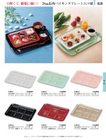 3-820-1 ¥2,65028cm長角バイキングプレート六ツ切 B277×199×22 ホワイトアクア 2-1305-1(55011940)3-820-2 ¥2,65028cm長角バイキングプレート六ツ切 B277×199×22 ライトグリーンアクア 2-1305-2(55011950)3-820-3 ¥2,65028cm長角バイキングプレート六ツ切 B277×199×22 ライトピンクアクア 2-1305-3(55011960)3-820-4 ¥1,90028cm長角バイキングプレート六ツ切 B277×199×22 黒銀パール 2-1305-4(55011980)3-820-5 ¥2,60028cm長角バイキングプレート六ツ切 B277×199×22 朱銀彩ぼかし 2-1305-5(55011970)3-820-6 ¥2,50028cm長角バイキングプレート六ツ切 B277×199×22 黄金銀彩 2-1305-6(55011990)※カレー・ケチャップなどの料理を盛り付けると、シミの原因になりますのでご注意下さい。盛 器820820※軽くて、破損に強い!※軽くて、破損に強い! 28㎝長角バイキングプレート六ツ切